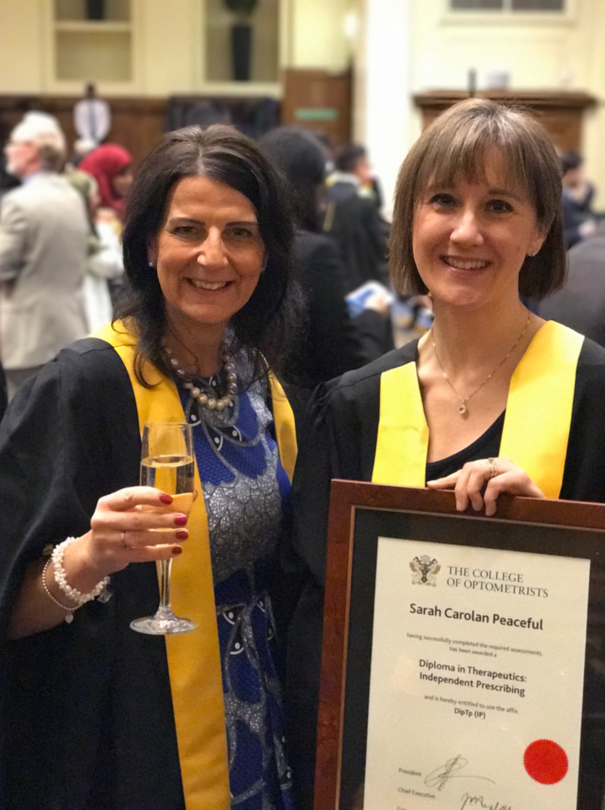 Coventry and Warwickshire LOC member, Sarah Peaceful, was today presented with a Diploma in Therapeutics and Independent Prescribing at the College of Optometrists Diploma Ceremony at Westminster.